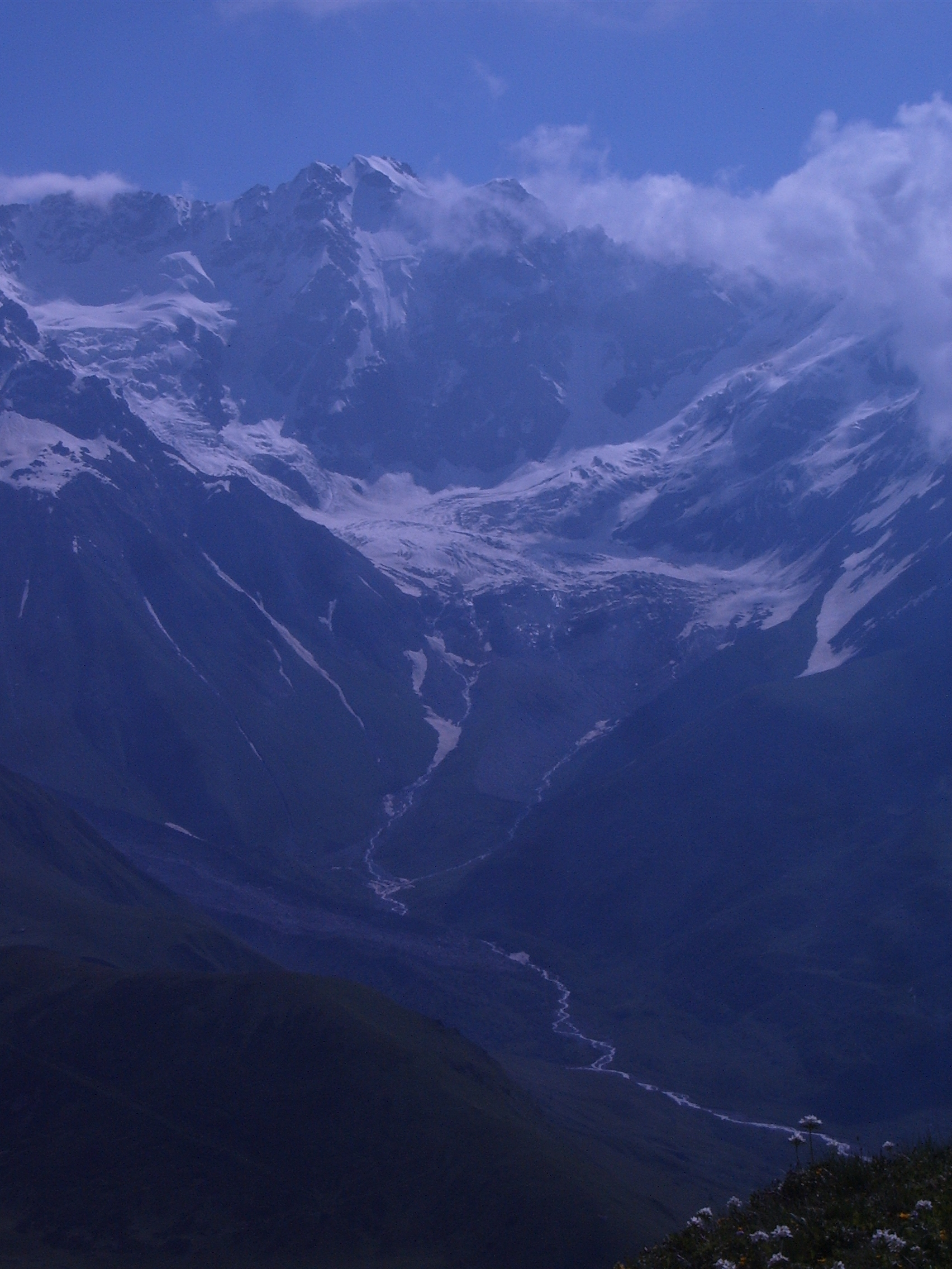 15 ИЮЛЯ Рома. Поднялись почти к самому плато, сделали стоянку у последних дров в виде чахлых кустиков. Палатку растянули на камнях. Дует ветер, шумит река, виден ледник и снежные языки по склонам. Это «долина смерти». Здесь нет ни рыбы, ни ягод, ни зверя, все русло усеяно выбеленными костями. Сегодня состоялись 15 «чудесных» форсирований ледяной реки и сложный подъем по крутой и «живой» сыпухе, где мы в очередной раз чуть не потеряли Брата Доктора. Игорь. Водопадам несть конца — ни на реке, ни на притоках. К ночи дошли до альпийских лугов… Комары поражают. Их немного, но они проявляют свою гнусную активность при +5 °С и на хорошем ветру… Бастя (собака Доктора) сильно страдает: холодно, комары и отсутствие еды. С нами две собаки: Чалка, охотничья лайка, и Себастьян Перейра, он же Бастенька, бигль по экстерьеру и полный балбес по натуре. Доктор взял его лишь потому, что не с кем было оставить в Москве. И захватил для любимца три килограмма собачьего корма. Бастя успел съесть лишь килограмм, с остальными двумя ему помогли мы. Чалке так и не перепало лакомства.