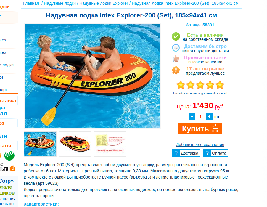 >>59556 >Intex explorer 2 >>59574 >За чем же ты лжешь, скотина? >Intex explorer 2 2 превратился в 200 на ссылках 300. Нубу в этих советах еще и выдаче поисковика само то разобраться! Вес до 3 кг при грузоподъёмности от 150 Давление в лодке такой какое обычно?