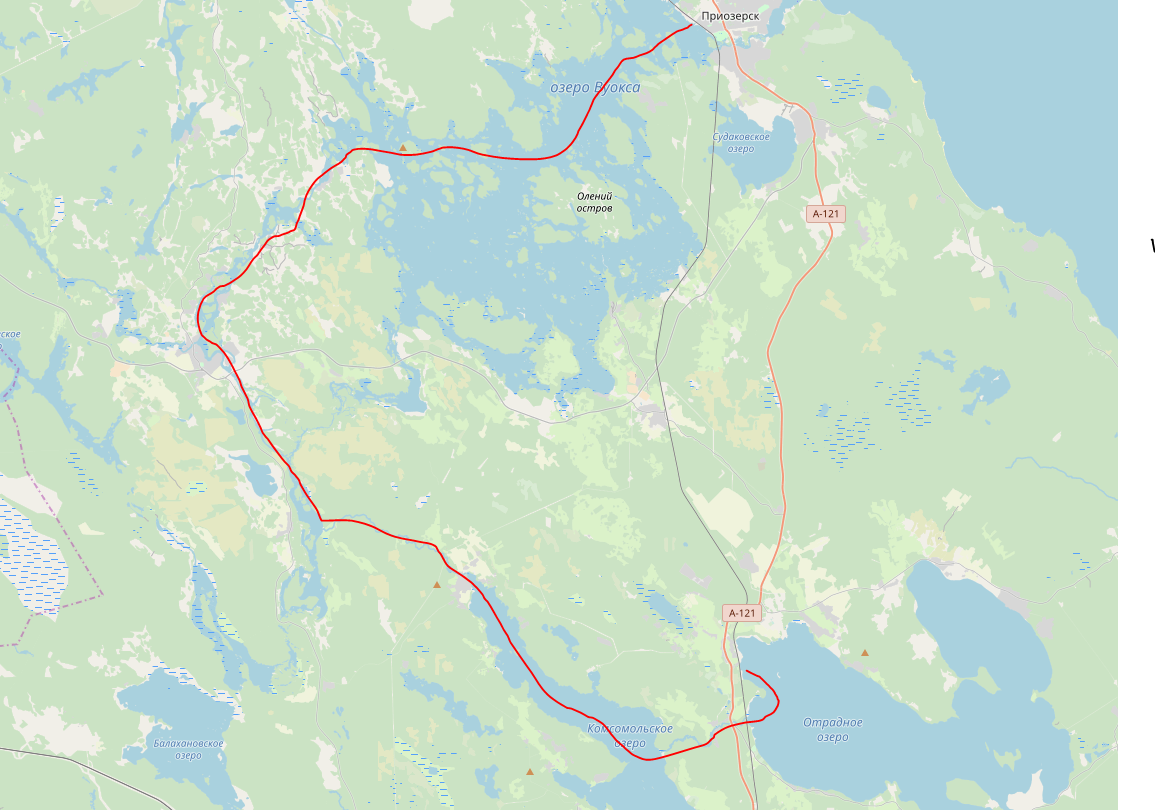 Так, если не был, есть ещё хороший маршрут от 152 км до берега Ладоги, там слева будет большая скала, можно обозреть окрестности, а если пойти направо, выйдешь, через 10-12 км. на шоссе, в районе Бурнево.