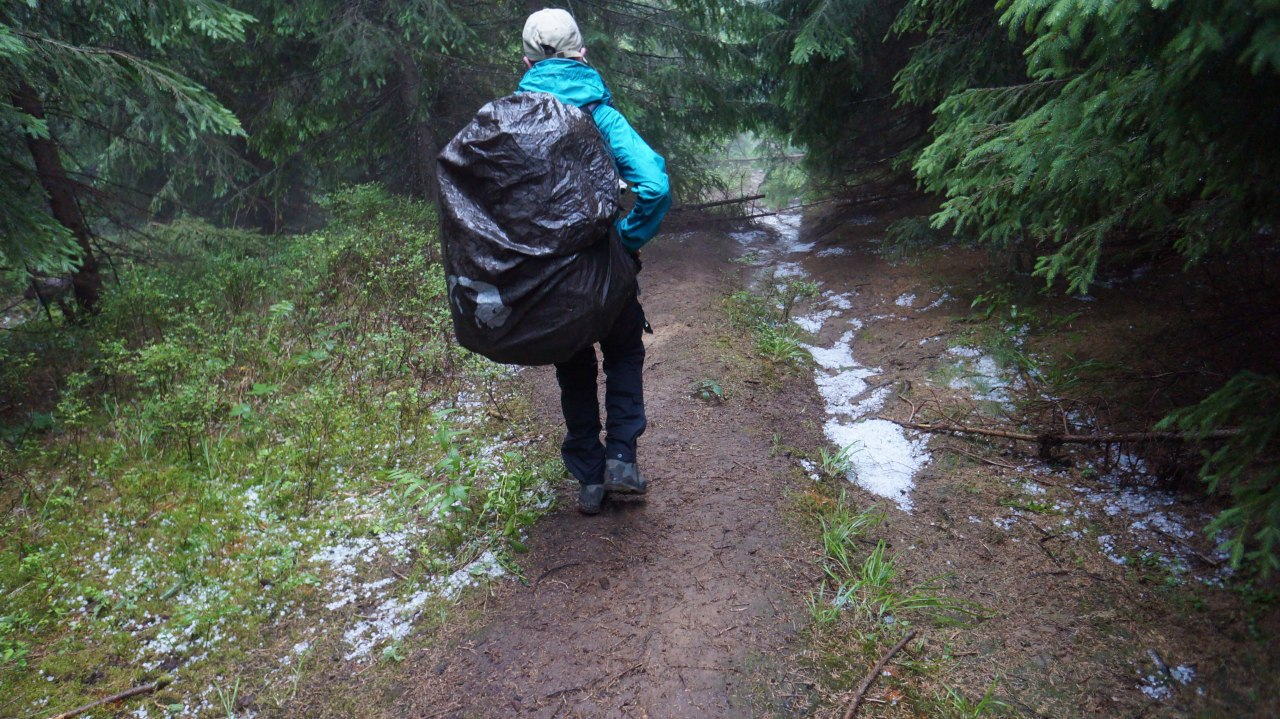 У меня с одеждой против дождя был небольшой проёб. Я купил куртку в последний момент. Ждать доставку было некогда, поэтому пошёл в физический магаз и выбрал одну из самых дешёвых (Фьяльрейвен, мать его суку). Понадеялся, что она вынесет лёгкий дождик, а для сильного дождя у меня был дождевик пончо. Куртка была тоненькой и, как оказалось, не походной, а городской, они её не обработали своим хвалёным воском, поэтому она мокла от малейшего дождя, и мне пришлось потеть в пончо. И ещё я нихуя не проверил, из чего были мои футболки, перед выходом. Они оказались хлопковыми. Заебался их сушить, а со счерашнего дня вообще не надеваю, лежат, вон, воняют. Пончо тоже какое-то не 100% непромокаемое (или я так сильно потел).