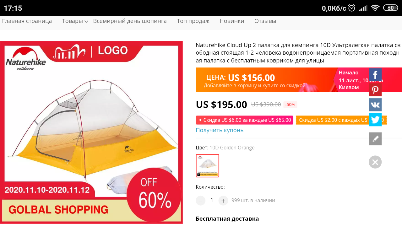 Тут когда-то был разговор про спальники и я сказал что за 4к можно летний пуховый купить на алике. Дешево! Черт распетушился: РЯЯЯ НЕ БЫВАЕТ