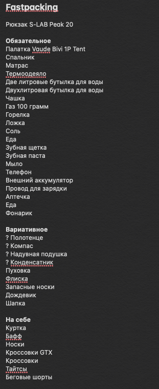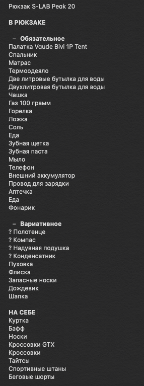 И при этом без глупостей, все нужное будет прямо вот очень. Но парадокс, что если уместить в меньший рюкзак то вроде все нужное останется с тобой, а веса и объема меньше.