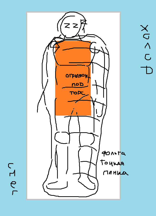 Тебе если детали интересны, у меня с двух сторон фольгированный изофол. Тонкий, длиннее и шире обычной пенки. Зимой вдобавок к нему идет огрызок под торс.