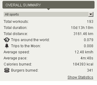 >>807 >>808 Лол, хайвмайнд. Мне это нужно чисто для себя. Друзей то 3,5 человека. Я просто с детства был немного повернут на статистике, поэтому мне нравится смотреть подробные отчеты о том, как я оторвал задницу от компа.