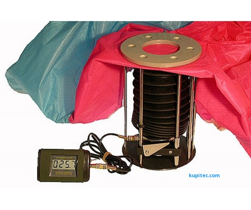 Плюс учитывай износ. Ресурс крыла считается около 300 часов налета. Пилот выходного дня имеет 30-50-70 часов в год. Так что ресурс крыла вылетывает лет за пять. Так что крылья 5-летнего и далее возраста покупать можно только после проверки опытным пилотом, желательно хотя бы с продувкой ткани на порозиметре. Пикрил, проверяет состояние ткани и ее воздухопроницаемость