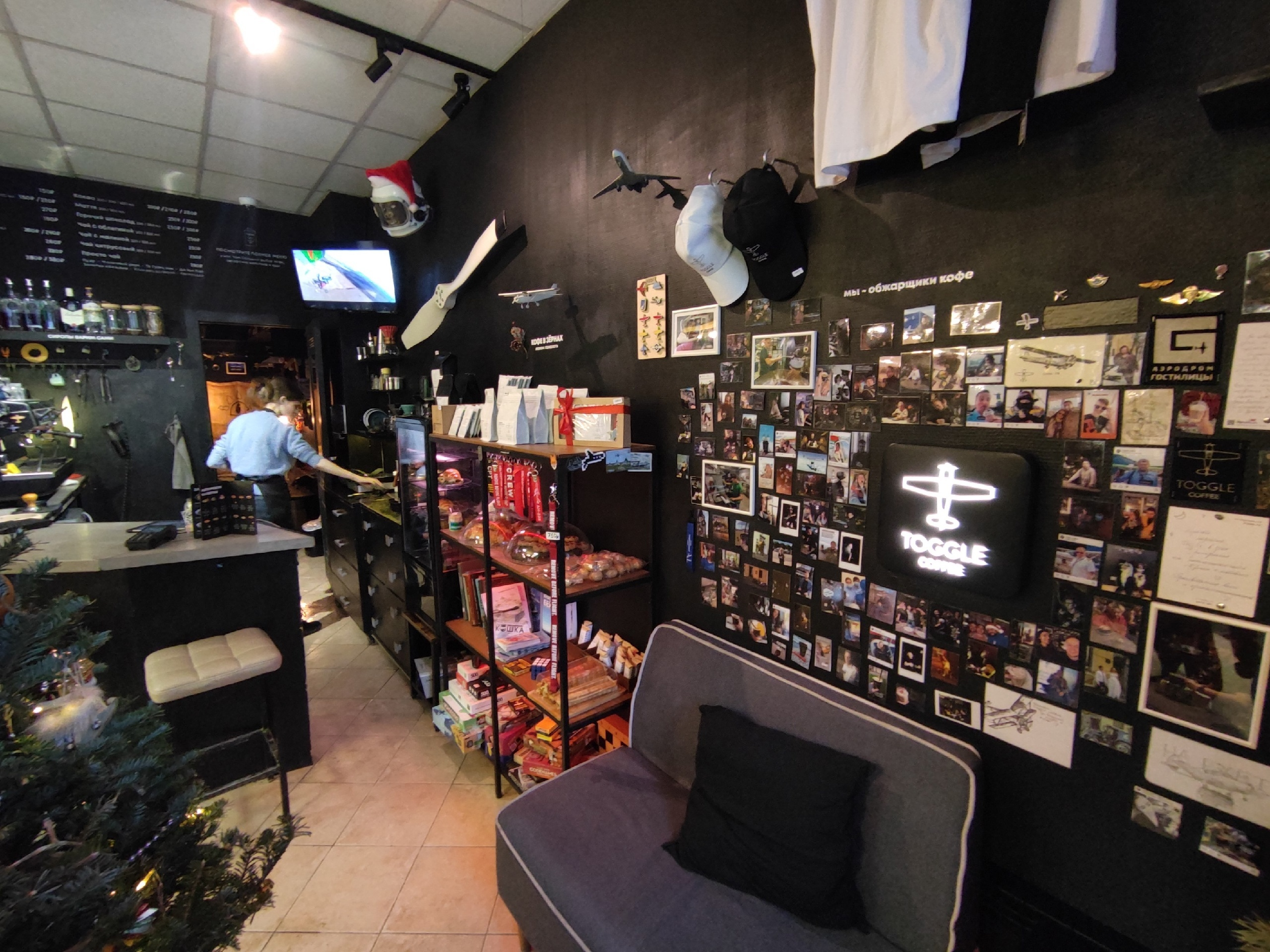 Пикрандом, ламповое авиакафе рядом с Финляндским вокзалом, которое я случайно нашел. Крутят видосы с самолетами, вокруг всякие полетные штуки и антураж, на чашках с кофе рисуют не цветочки, а як-52.