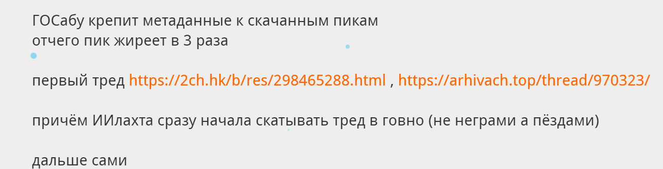 >>844450 А чему удивляться? Интернет вообще пошёл по пизде, картинки и текст почти никто не потребляет, если это длиннее поста во втиттере или телеге. Все смотрят видео, слушают подкасты. Контент должен быть доступен даже инвалидам, ни то что без рук, но и без мозгов. Второй пик не показатель, кодек может в другой переводиться, более оптимальный для сайта, например jpeg в webp. Проблема с цветовой схемой, прикреплённая к файлу в контейнере всегда не работала, возможно автоматом абу трёт координаты, так как по закону это персональные данные, а все льют со смартфона не думая, а iOS и macOS всегда прикрепляет к пику мету откуда скачено. Картинка может же быть контейнером, а не просто бинарным потоком. С файлами надо уметь работать, и уметь её читать. ...а разобраться тебе поможет онлайн-курс датамайнинга от фэт-брейнс, если ты ещё не в ай-ти, чего тянуть? Пока одни гибнут на фронте за гробовые, ты будешь обласкан и трудоустроен за овердохуя, зачем 300к в окопе под дронами, если можно их получать попивая латте с видом на центр города?.. кстати мой бугурт с 24го февраля, когда айтишником быть взападло, хотя в чём именно моя вина?