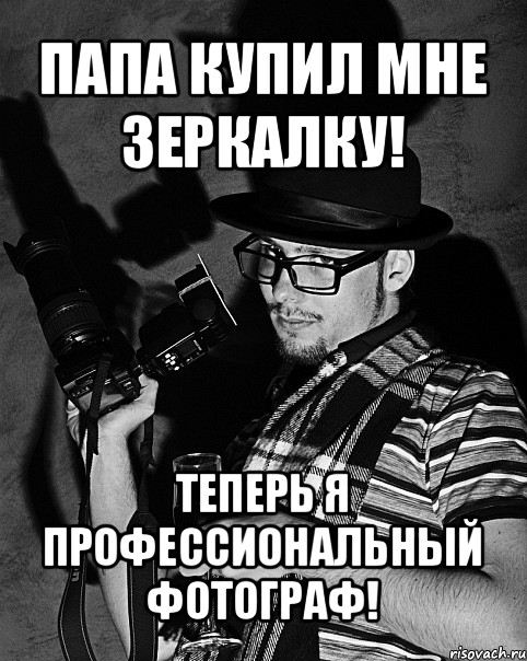 Селфи в грязное зеркало. Фильтры для Лайтрума. Установка magic lantern. Муки выбора между пластиш-фанстастиш и Гнилосом через переходник с Алика. Кузьмичи с Никонами, свадеющики с Кэнонами, ванильки с ещё полузеркальными Соньками. Ты копишь полгода и покупаешь первую зеркалку с рук, чтобы звать тян на ню-фотосессии...
