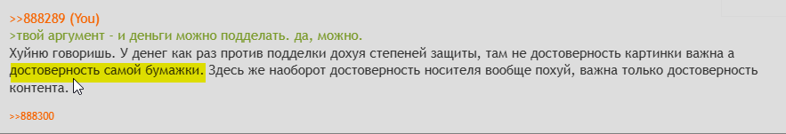 >>888287 твой аргумент - и деньги можно подделать. да, можно. >>888286 >под ними комментарии выдуманных пользователей итд это самое пиздецовое, причем реальность их сообщений вообще никак не верифицировать.