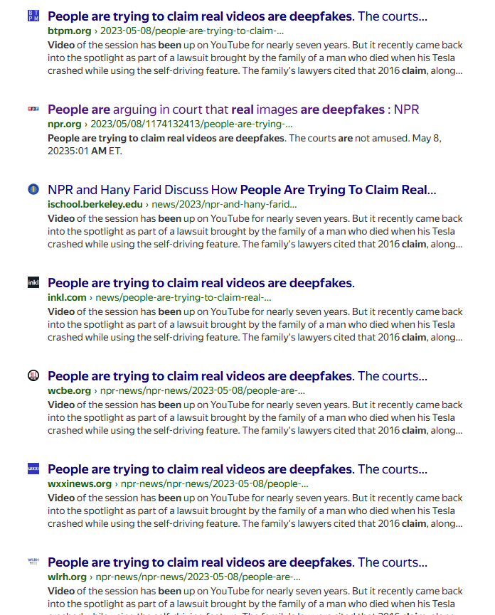 >>888285 >т.е. парадигма будет такова: каждая картинка - это нейрокал, пока не доказано обратное. Согласен. Было уже несколько статей на эту тему от умных дядек, о том что нейронки скорее всего в корне изменят общение в интернете и потребление контента/информации. Такая умная лента с налету генерящийся информацией под тебя - изображения, видео, текст, под ними комментарии выдуманных пользователей итд. И по дефолту все будем считать нейронками, именно пока не доказано обратное.