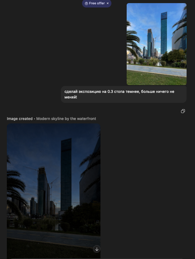 >>894535 Суть генеративных ии именно в том что они генерируют заново. Даже когда ты скажешь изменить один пиксель он сгенерирует картинку заново с небольшиими отличиями. В момент когда генеративная нейронка высрала тебе твое фото обратно, оно стало ии слопом. Зависит от нейронки, кто-то может менять меньше, но по сути. Вон этажи поехали танцевать с какого-то перепугу. Еще она прикольно поняла 0,3 стопа, но это ладно. Уж "ничего не меняй" она должна была понять, верно?