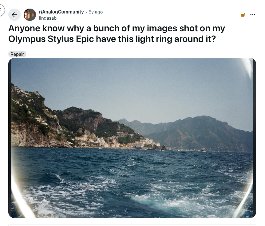 Мое гилти плежур рассматрвиать фотографии в отзывах на фотопленку на ozon, есть еще такие шизы? Иногда прям гемы фотографии попадаются, хотя в основном просто какие-то фотки с отпусков. Но я про что, сегодня вот такое увидел, и у нее на всех снимках подобный эффект, вне зависимости от освещения, что это вообще такое? Объектив хуево к фотоаппарату прилегает? Впервые вижу такие кольцевые засветки.