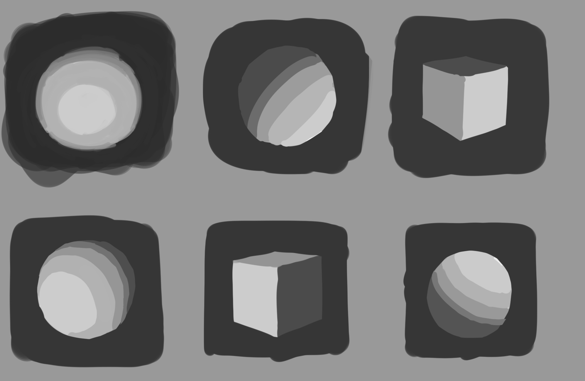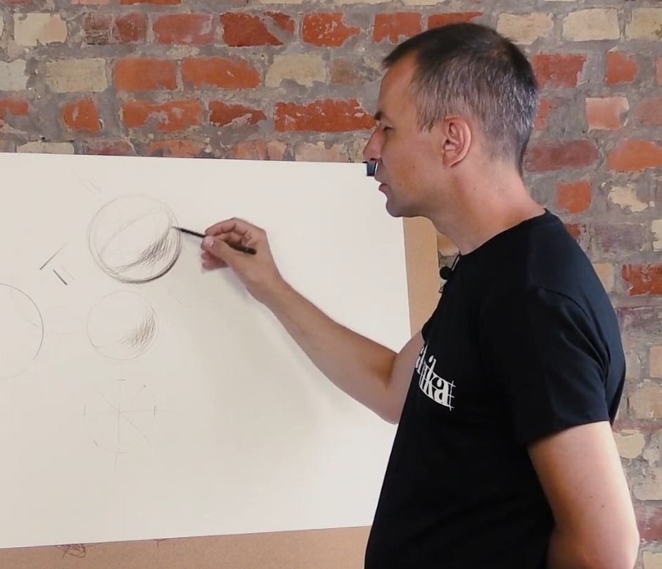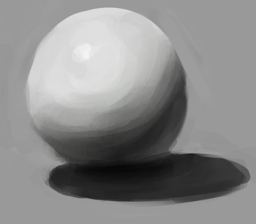 >>891997 По-хорошему, если не ставить себе цель сделать прямо идеальный шар со всеми нюансами, а просто показать его светотень с бликом, то это дело занимает буквально 15-20 секунд.
