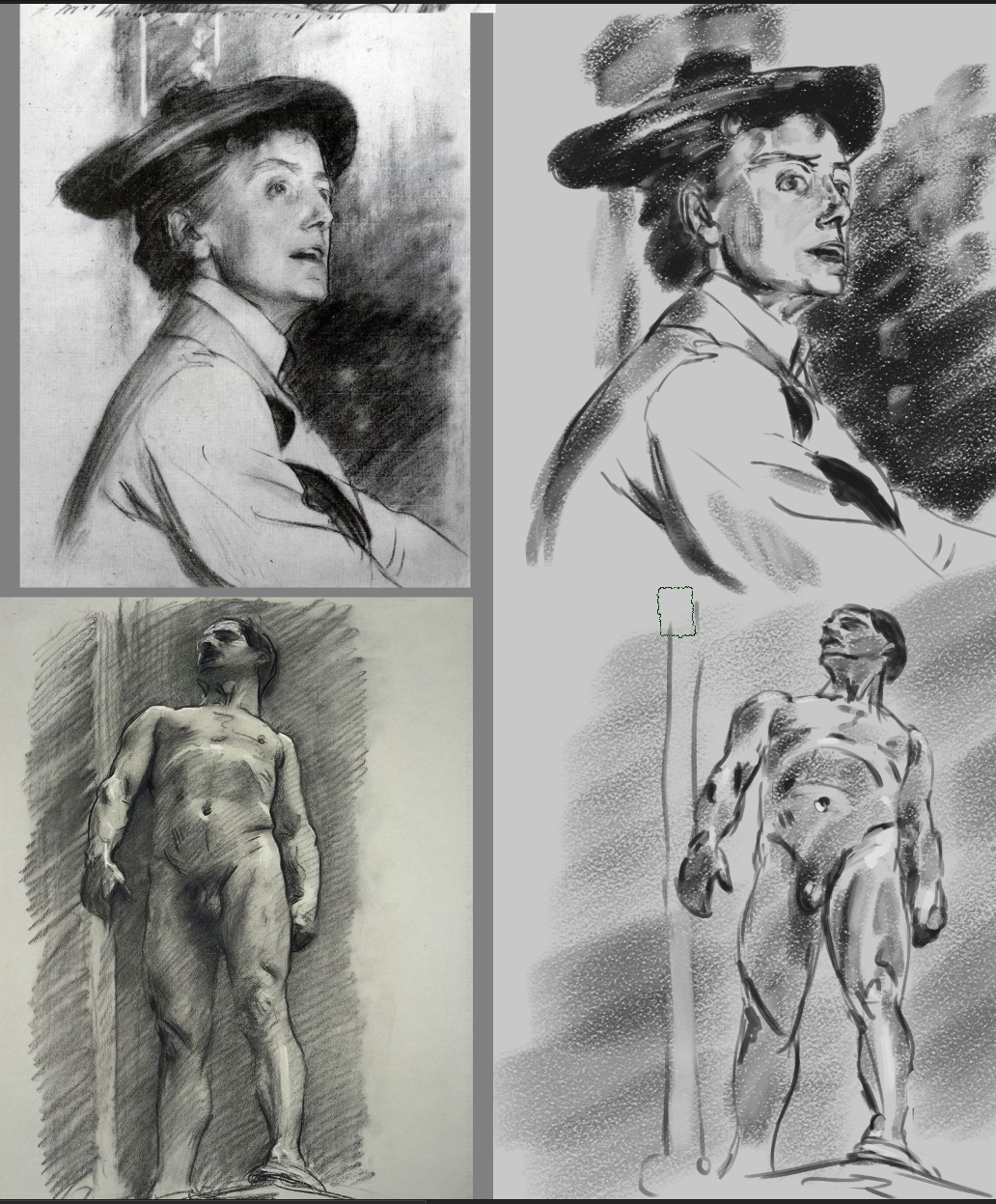 >>893320 Где/как учился рисоать? Смотрю курсы от крутанов, они советуют рисовать с помощью квадратных болванчиков человека. У тебя вижу набросок будто сразу линиями набросал без этих всех заёбов, как у моего любимого художника. Интересно как вы к этому приходите и как это вообще происходит.