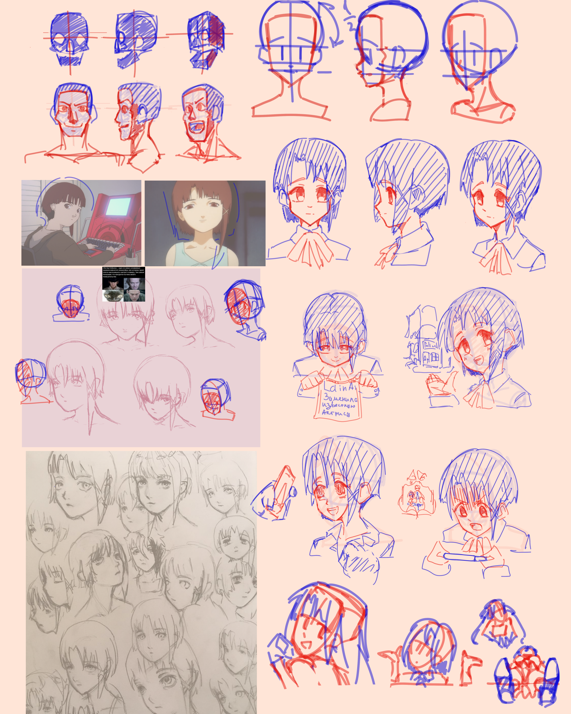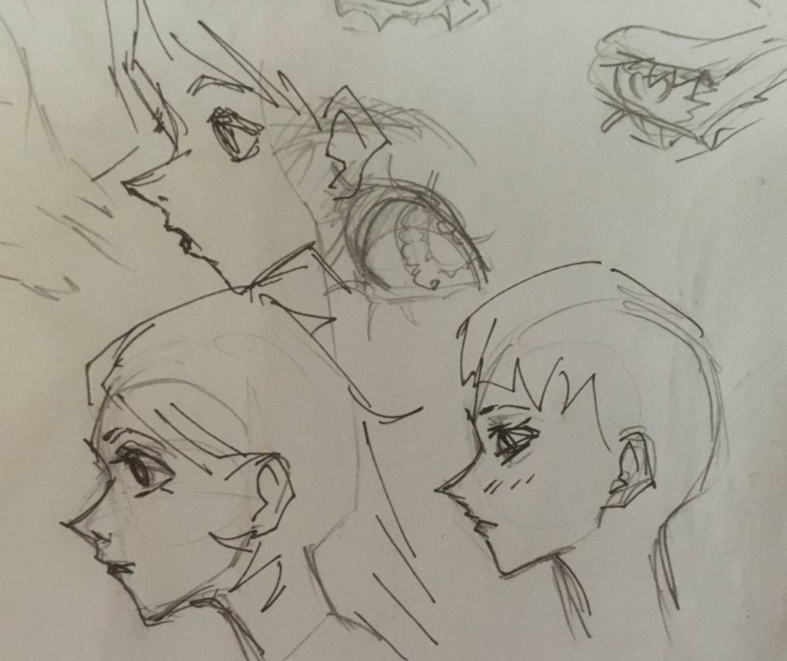 Мне нравится что у меня кажется наконец появился прогресс в рисовании лиц, вот простым карандашом это старые попытки в лица, месяца 3 назад, а красным это сейчас попробовал повторить, но еще есть что исправлять конешно. В профиль вообще не умел раньше, а сейчас как-то лучше получается