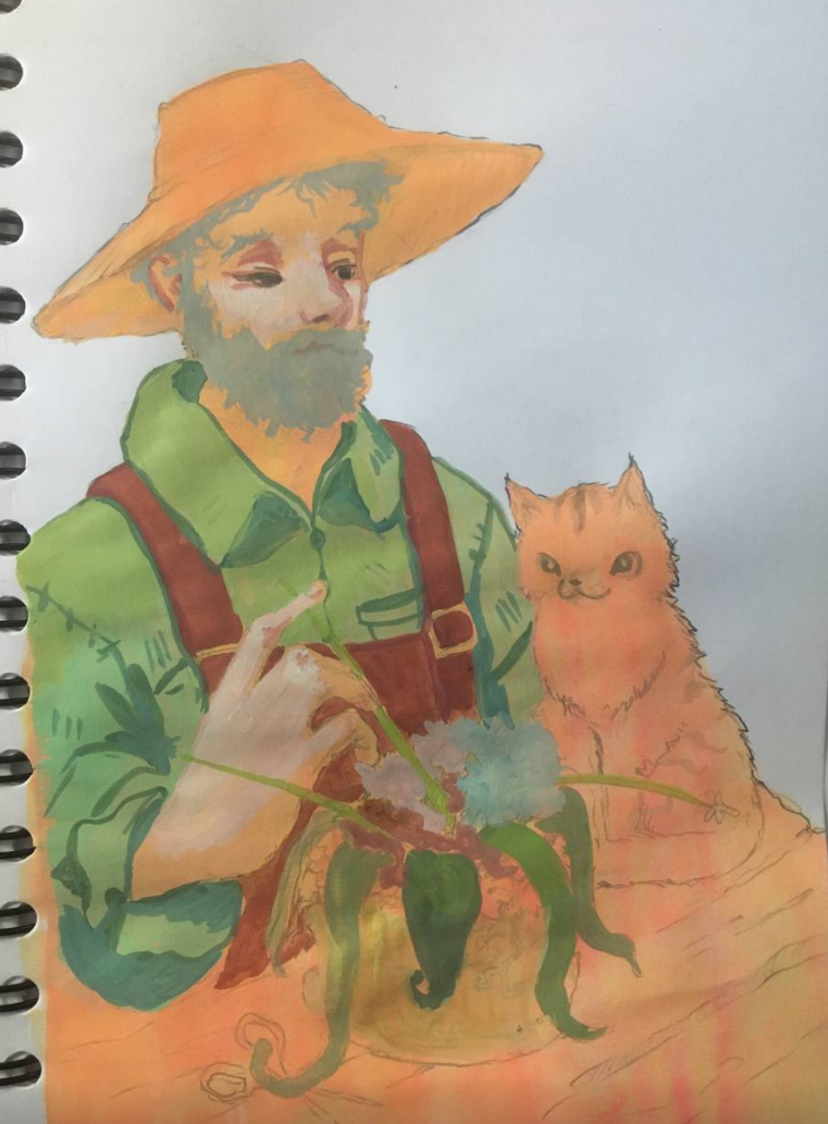 Сап, это нарисовано моим другом, который абсолютно не учился рисовать и “ну просто мягкой кисточкой мазюкает от пятна”. Хотелось бы получить от вас критику и указание на ошибки.