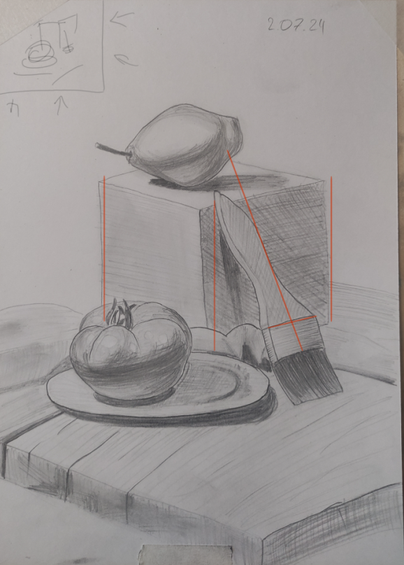 Следующее по сложности это органические формы. Куб не может тебе рассказать, какой формы будет нарисованный объект, не покажет тебе перекрытий и не скажет, как мы будем рендерить эту форму, как штриховать, он только грубо покажет ориентацию в пространстве. Про это можешь посмотреть у питера хана в курсе dynamic sketching или у проко proko beans, может на дравабоксе тоже что-то есть