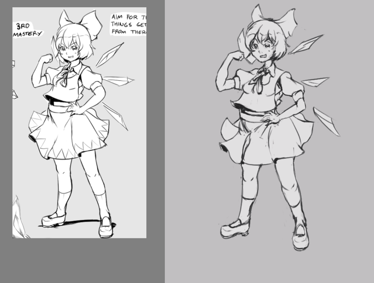 >>891969 Применять разные методы копирования, про некоторые идет речь в этом видео >>891817, обращать внимание на негативное пространство, углы, расположение элементов относительно друг друга и исправлять рисунок пока не будет похоже на реф хотя бы на 80-90%. Сначала их тяжело уловить будет и времени на брутфорс много уйдет, но это не та штука, которую как перспективу можно изучить и сразу правильно делать. Даже если пропорции условного человека наизусть выучить, это мало что даст, пока не надрочится нейронка в голове, чтобы ты сам чувствовал, что где поправить надо.