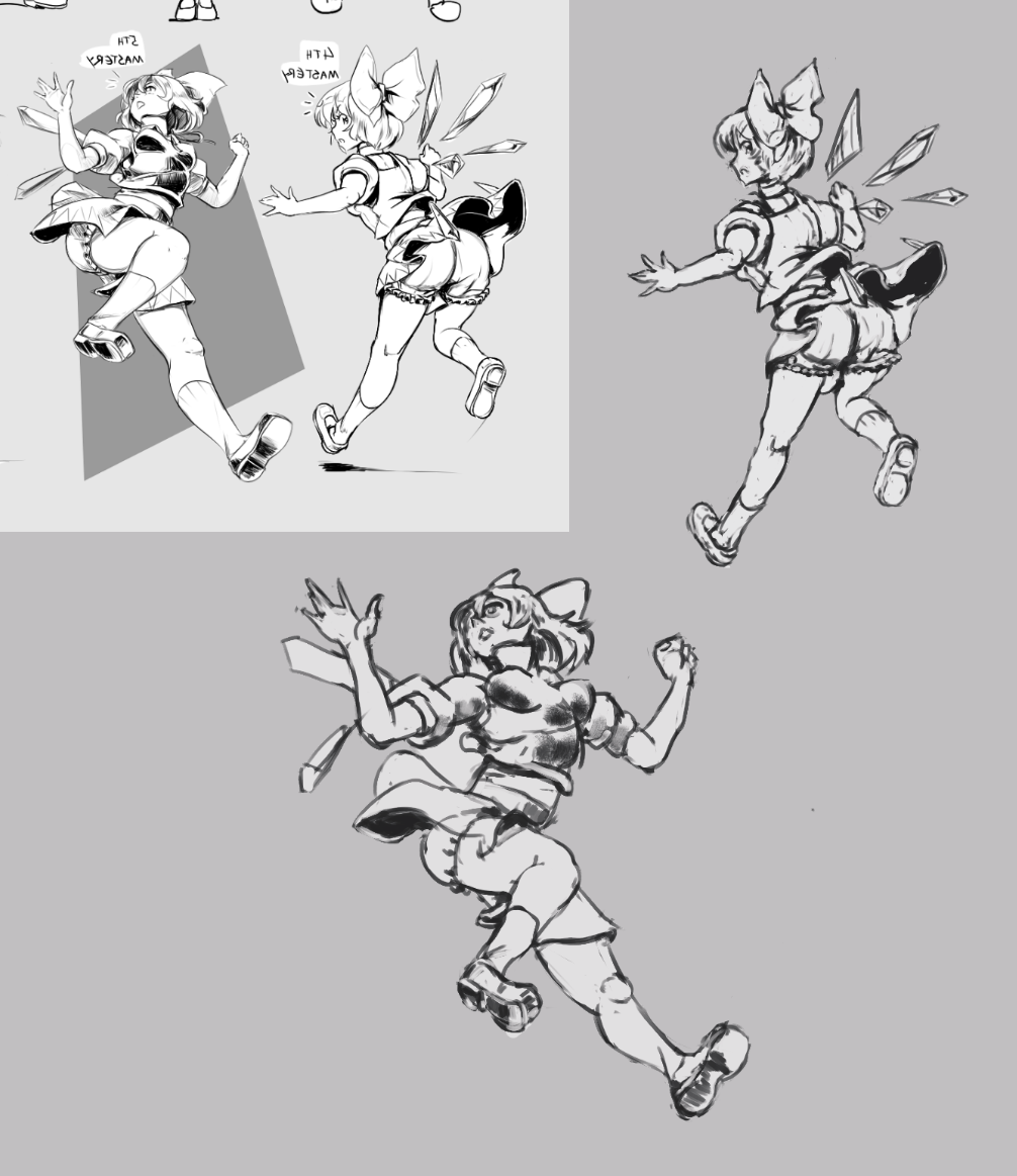 Доска живая пиздец. Тренирую перспективу+позы. Справа - изначальный реф. Хотел ракурс посложнее, но в итоге всё переебал и пришлось делать стандартный .