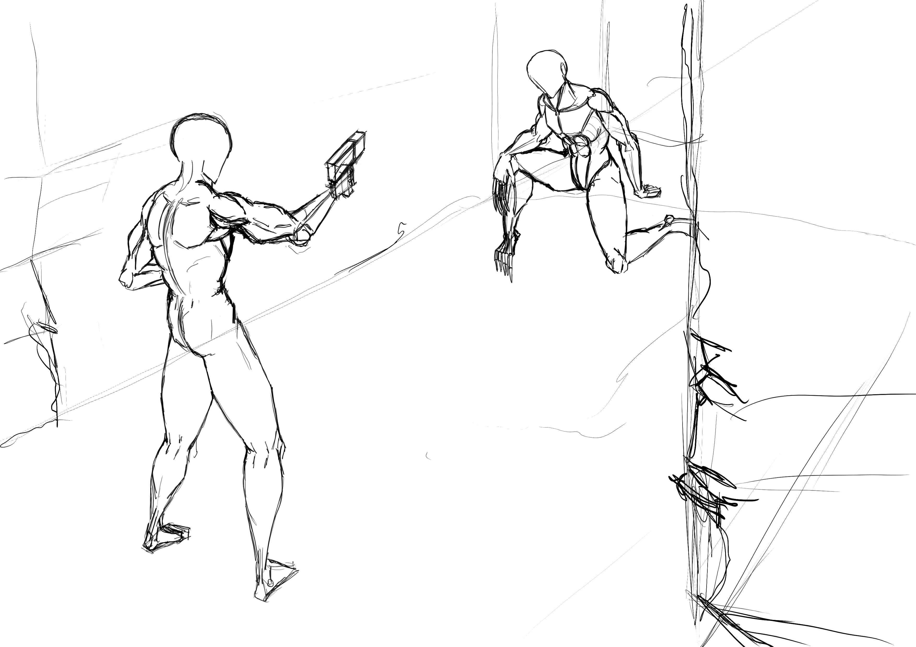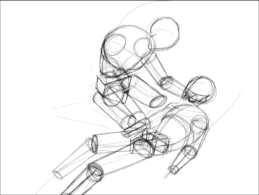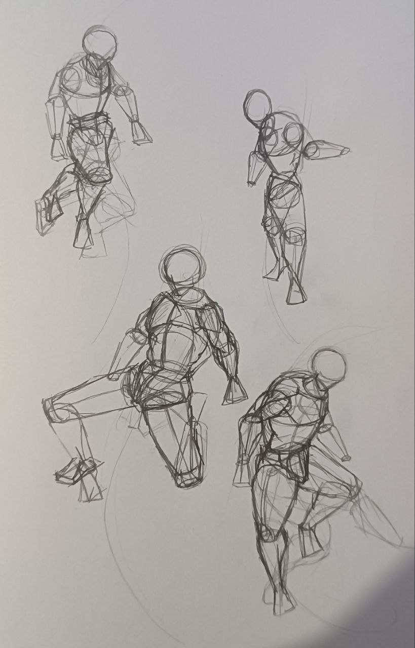 вечером: надо повторить принцип построения из книги Дэвида Росса. надо обратить внимание на пропорции манекенов. надо обратить внимание на поворот манекена в пространстве. мышцы пока не прорисовывать.