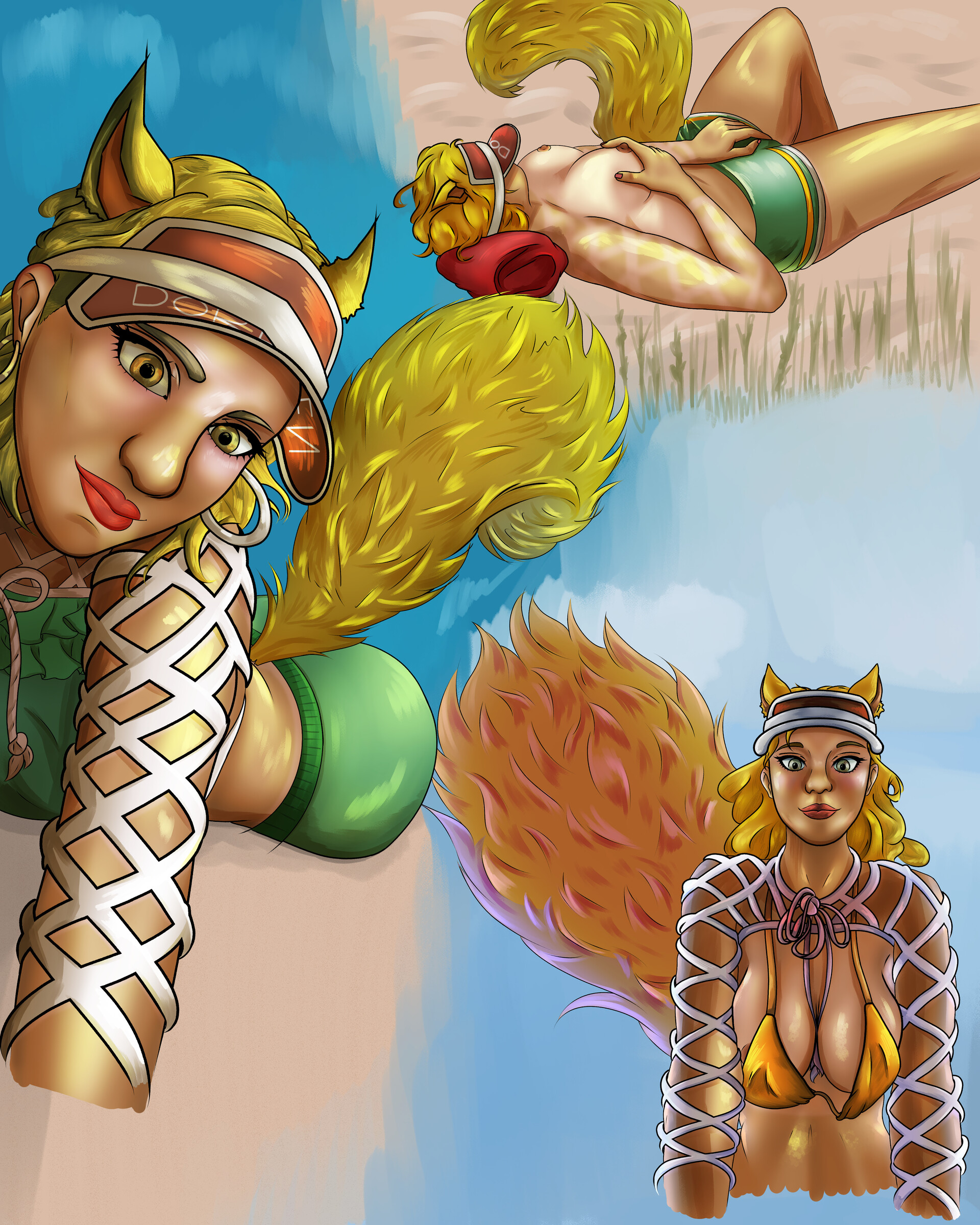 >>891210 Более сильная стилизация лица. Объем золотого рельефа на шапке был заменён на узор который вроде бы и имеет объем, но всё равно выглядит плоско. Волосы стали просто более четкими, но теперь отдельные пряди похожи на какие-то веревочки а не пряди. Вывернутая кисть на второй + просто ужасная ладонь + сетка залазит на ноготь. Плащ сливается с фоном (в плохом смысле). На второй очень плохо видны зрачки. Типичный диджитал артист у которого слабый рисунок, поэтому он срёт как можно больше цветом приправляя хроматическими калофикациями.