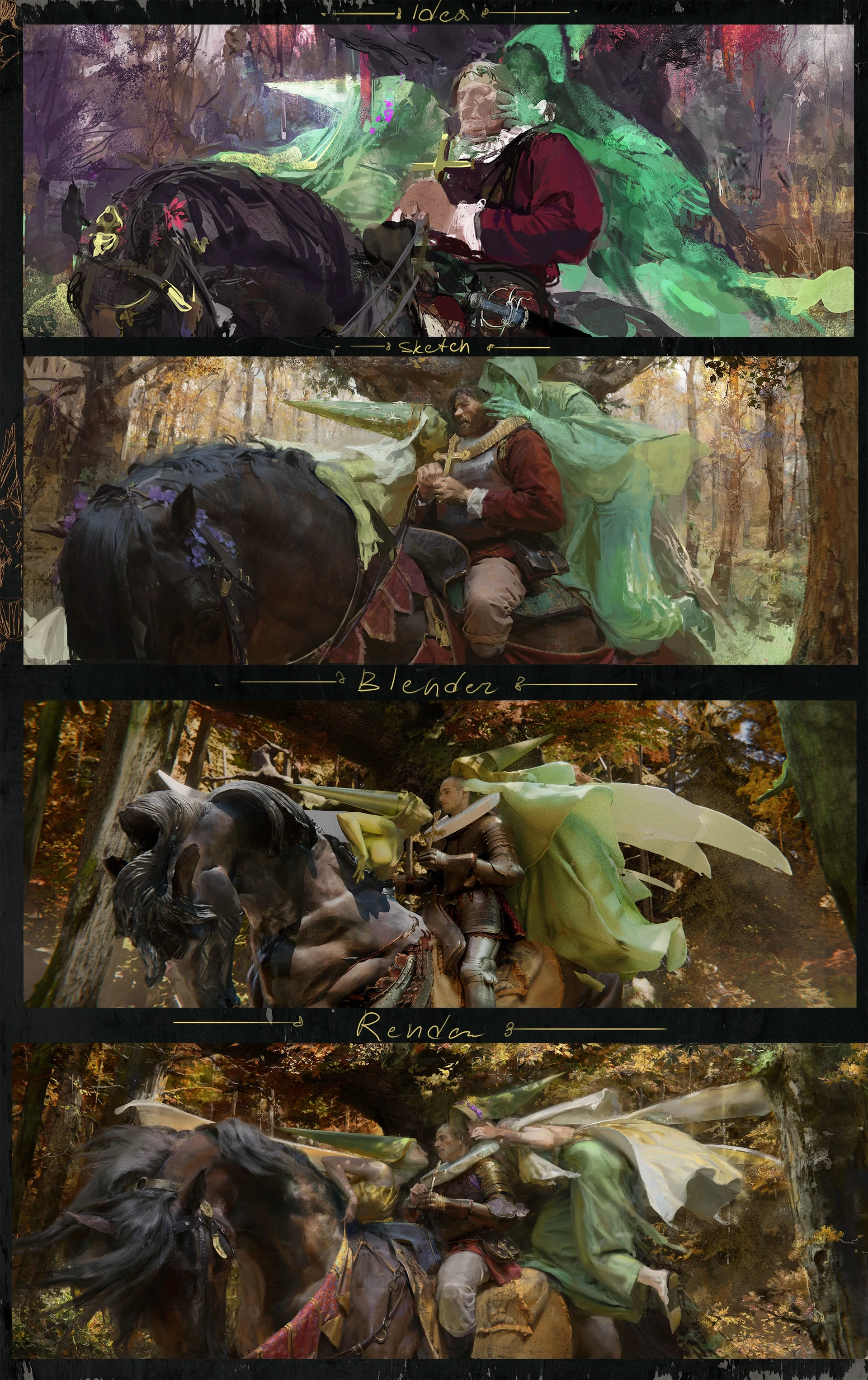 >>938991 Хз на каких даунов расчитан пик, я должен поверить что этот дебс сразу накидал идею в цвете, потом прорисовал кучу деталей и фотореалистично прорисовал штанину с головой коня и рукав, а потом откуда-то взялся целый резной конь с шевелюрой и рыцарь с неправильной бронёй и всё это якобы 3Д с полноценными текстурами которые он тоже якобы сам нарисовал, а потом он это домазюкал и нога в броне обратно стала штаниной но в 10 раз даунгрейднутой чем на изначальном "скетче"? Я не знаю что там за паджит с 60 айсикью с такими железобетонными пруфами, но любой калцептер=фотобашер который юзает триде всегда начинает с чб рендера и грейбокс-3д болванок, на которые потом накидывается цвет и это всегда в последнюю очередь.