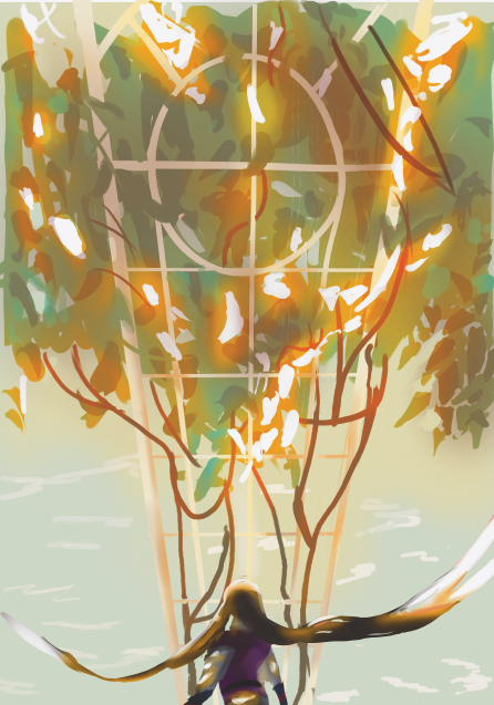 Я раскинул пятно неба, дом, дом подальше темнее, дом еще дальше еще темнее.какую то перспективу. Накинул окна с рамами и всё это закрыл деревьями. Накидывал схематично. Просто что бы пощупать объем.