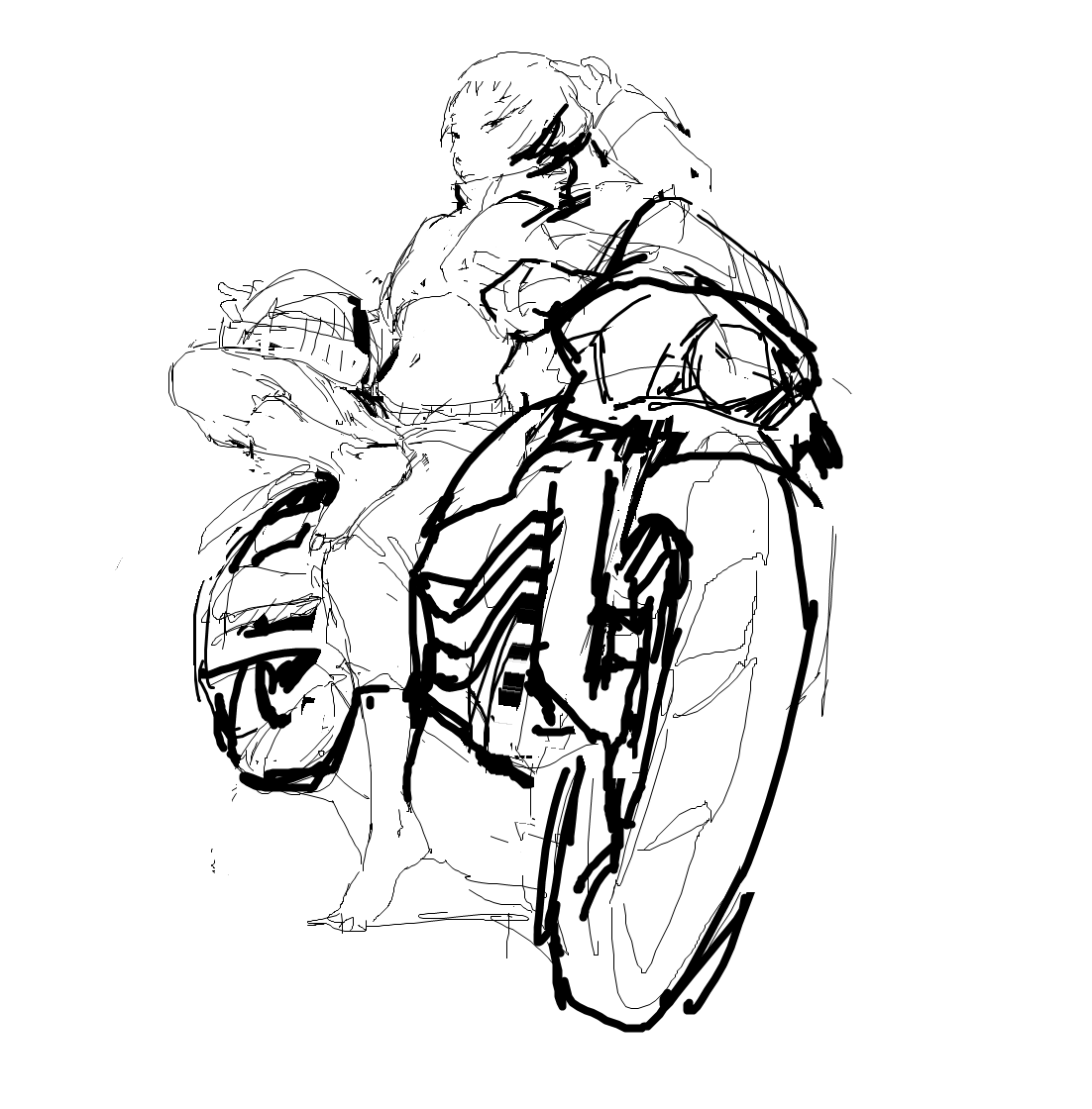 >>918745 Эта штука предполагает, что ты уже рисуешь от силуэта через гестуры и можешь в конструкцию. Он предлагает заполнить получившийся силуэт упрощённой конструкцией мышц.