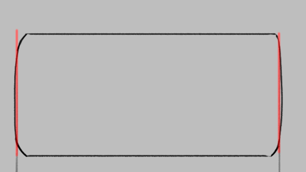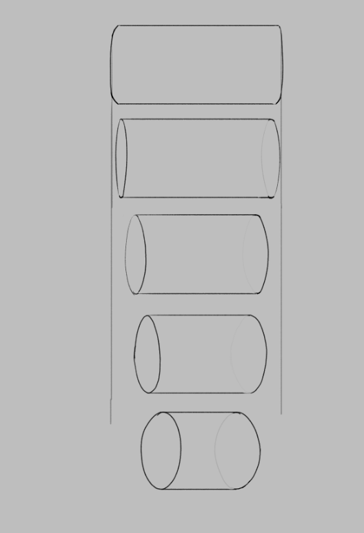 >>923517 Ну тип. Когда цилиндр поворачивается, то одна часть отдаляется и она чуть уже должна становится из-за перспективных сокращений. У тебя же словно колбасу обрезают лежащую, потому что две линии тупо параллельны горизонту
