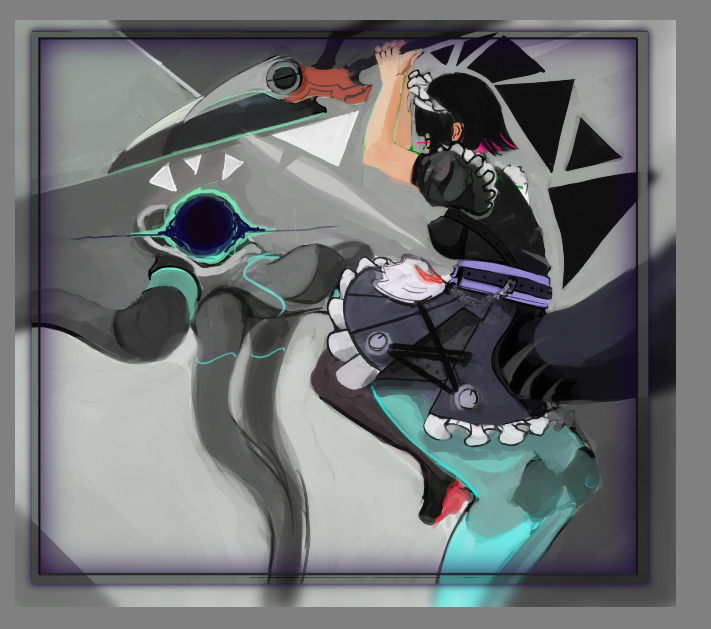 Но это ведь не всё что мы видим. А что мы видим? Ну тут словно бы должна быть оппозиция между углом где зеленый всплеск с остальной красной частью. Может типо там изображен союзник а все остальные враги? Я не ебу, выглядит как визуальный мусор.
