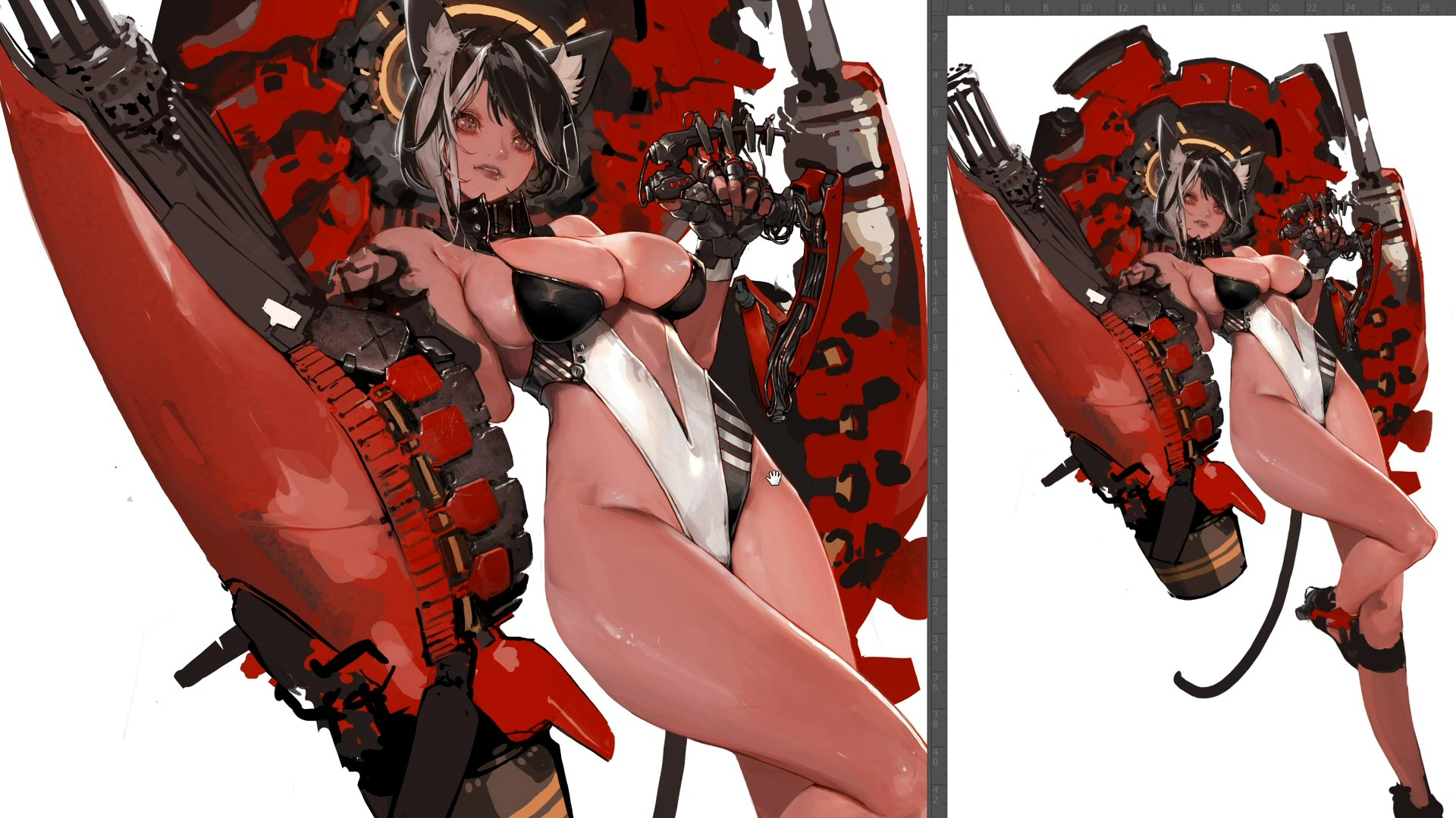 >>923832 Когда скетч мышкой калякал почему-то вышло перспективой и пропорциями лучше чем когда сидел с прикушенным языком выводил торс по центральной линии. Вместо утрированной перспективы с "ногами в ебало" снизу-вверх получилось почти-то приземление на четвереньках.