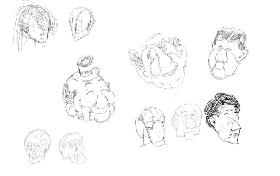 Надо не просто примерно промежутки визированием, а еще и ключевые точки черепа отвесами перепроверять. Слишком слаб у меня глазомер и то что нос длинее я начинаю понимать только когда уже начинаю класть штрих. Ну хоть штрих тренирую по форме