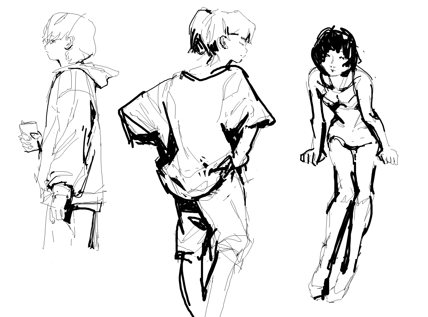 >>923829 Берешь и рисуешь линии поверх скетча. У тебя пока только скетчи.