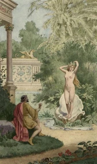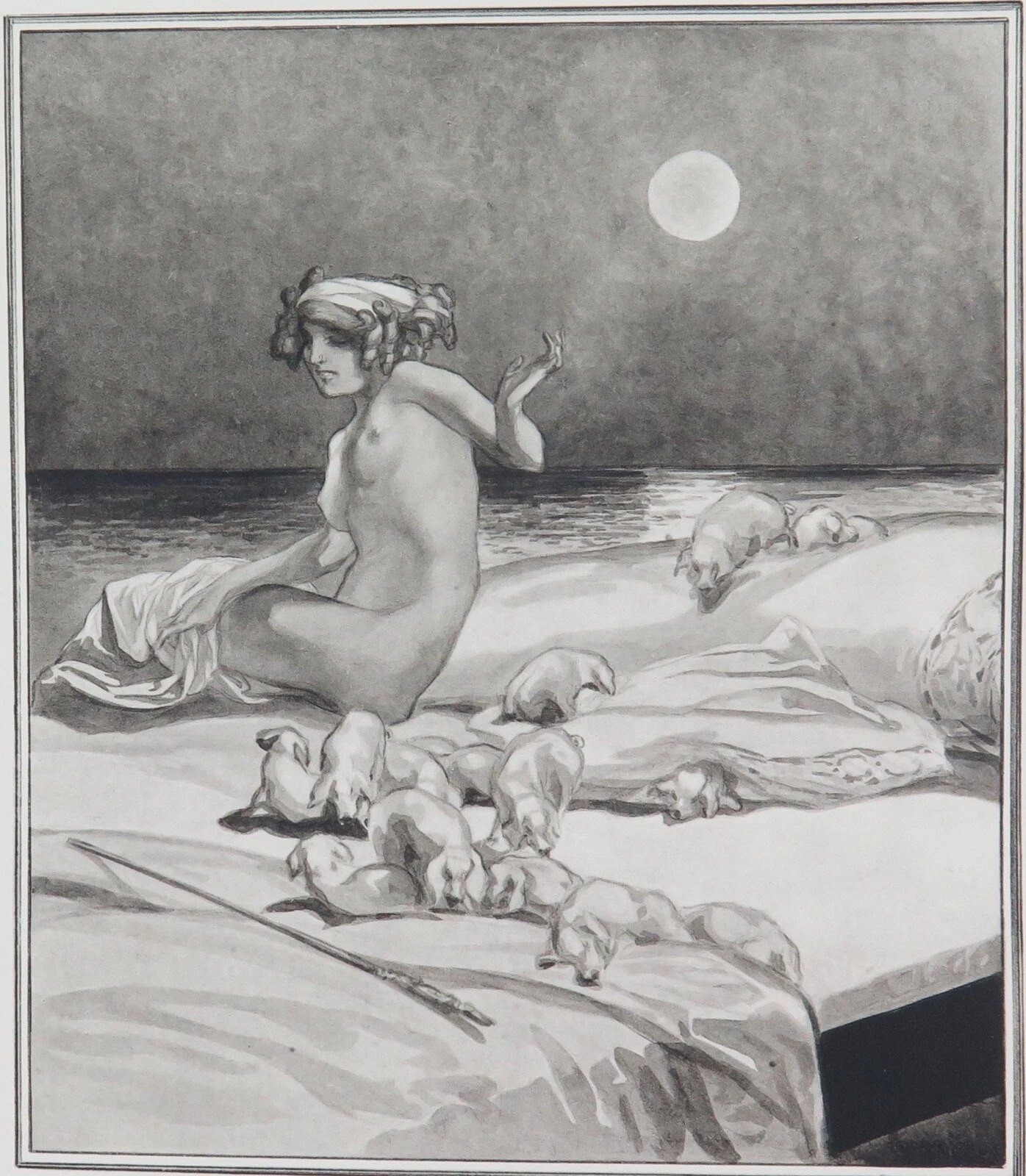 Franz von Bayros (28 May 1866 – 3 April 1924) was an Austrian commercial artist, illustrator, and painter, best known for his Tales at the Dressing Table portfolio.[1] He belonged to the Decadent movement in art, often utilizing erotic themes and phantasmagoric imagery.[2