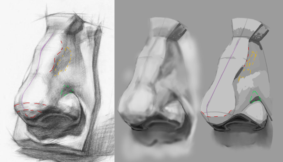 Господа крутаны, вопрос от нуба позорного. Вот я рисую носы и у меня вот возник вопрос. А как лучше? Вот я нарисовал +- на глаз(подправил чутка) и думаю а что лучше сидеть дальше как я на глаз рисить носы . Или все же лучше сидеть задрочить схему носа? Проблема в том что схему я нихуя не понимаю кроме вида в 3\4 и может быть в анфас. Но как говорится можно пытаться до победного. Тут мне выше кидали рыжкина, ну вот у него все так раз раз и охуенно и быстро, но транслировать это же на другие носы у меня не выходит нихуя.