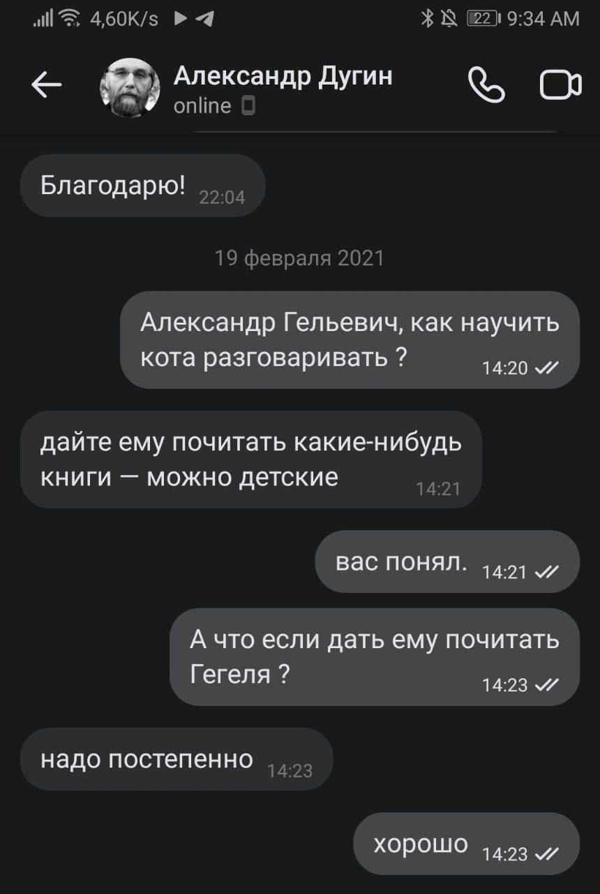 Анонсы, а какие есть способы написать Дугину, поговорить с ним? И есть ли такие способы вообще? Ни в ТГ, ни в ВК у него нет контактов. Раньше видел много пикч про то, как Дугину писали, чет спрашивали. Видимо после гибели Дарьи он закрыл все публичные контакты...(