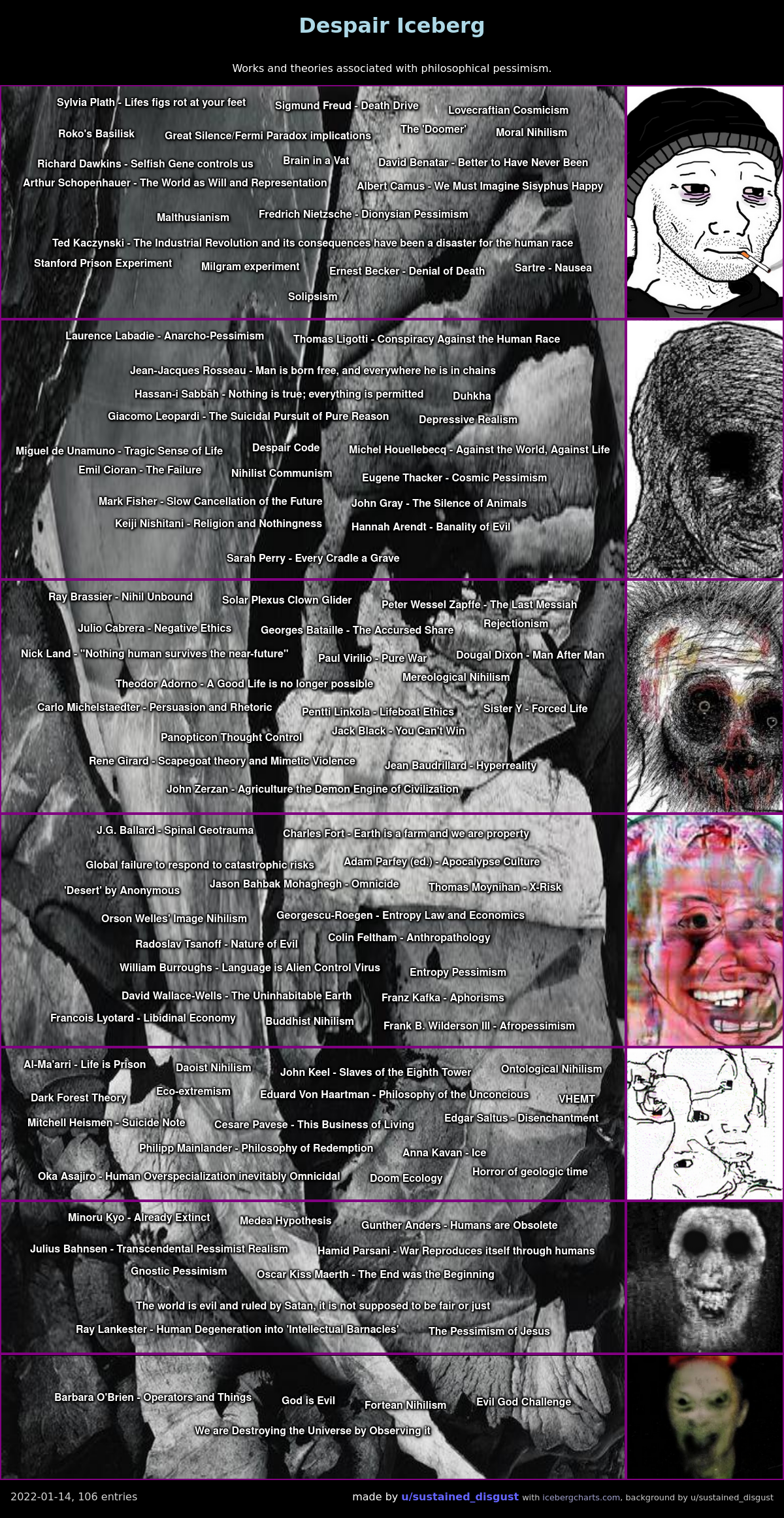 - Начнём с эпохального. Ницше ≠ уныние и смерть. Это называется пассивным нигилизмом. Ницше - активный нигилист. "Бог умер" - это не злорадство или попытка унижения, это даже не прямое значение, эта фраза страшна и трепетна, если Бога нет, то сам смысл теперь в уязвимом положении, боле того, трансцендентное обоснование существования больше не работает. Именно поэтому нигилизм - экзистенциальное движение (учи базу сука!). Ницше был непонят со всех сторон, те кто не разбирались приписывают ему: либо пессимизм, либо власть сильного. Когда на деле, гер Фридрих лишь отвечал на кризис смыслов. - "Критика чистого разума" пожалуй одна из самых понятных и складных книг, которые ты можешь почитать по теме, боле того, её возможно понять даже не-философу. Была моей первой сложной книгой. Кант писал красиво и умело. Браво. (Да, я считаю что эта книга честно-сложная, её вполне можно осознать, если учить терминологию, которой не так уж и много. Предрассудок массового сознания - она не читаема; мой ответ - git gud. В отличии от Гегеля. Соси, Гегель. И Хайдеггер тоже.) - Много терминов ≠ хороший текст. Хороший текст это вообще - спорное понятие, но уж точно не упирающееся в огромное количество академ слов. Терминология хороша до тех пор, пока она служит ясному донесению идеи. - Шопенгауэр не эмо (рациональный пессимизм). Эмо был Чоран (метафизический пессимизм (название выдумано). Первый - математика; второй - музыка. - Экзистенциалисты созданы целиком одним человеком - Кьеркегором (да-да, ваш любимый Ницше тоже). Камю так вообще почти полностью байтит его тексты. - Как и собственно вся философия - комментарии к Платону)) (не то чтобы это миф). Любая (почти) философия после это либо "Платон прав, потому что...", либо "Платон не прав, потому что..." и это не странно или глупо. Тут всё как в науке, эти вопросы рано или поздно были бы поставлены, Платону повезло сделать это первым! - Предыдущее утверждение не должно восприниматься как антипризыв, наоборот, играй красиво! Выиграл тот, у кого комментарий круче (Я вру, не суди)! - Юм гигачад. Не люблю эмпириков, но Юм просто в край охуевший парень со стальными шарами. Юм, пожалуй, - единственный человек, которым бы гордился Пиррон. - Макиавелли не так прост как кажется. Споры о том троллил он или нет ведутся до сих пор. "Государь" можно читать как угодно, автор умер в обеих смыслах, это прекрасно. * Чёткого ответа на "Что такое философия?" тоже нет, то есть даже сформулировать это околоневозможно. Но я вот думаю, что сам процесс мышления над любой метафизикой - уже философия. - Чёткого ответа на "Что такое философия?" тоже нет, то есть даже сформулировать это околоневозможно. Но я вот думаю, что это - сам процесс мышления над любой метафизикой! Всего лишь мнение вашего слуги. - Самое честное для любого вопроса - "я не знаю" и это нормально т.к. ничто из нашего дискурса эмпирически недоказуемо, боле того, утверждение о возможности самого эмпирического познания тоже принципиально невозможно. (Ваш покорный слуга нисколько не хвастает, но он дошёл до парадокса знания Сократа ещё в возрасте, когда дети учатся в младших классах. "Если я знаю много - это значит лишь то, что я не знаю ещё больше, чем знал до этого." - примерно так звучало моё заключение. Я о том, что философские открытия могут прийти откуда не ждал и абсолютно независимо от любых факторов.) - Если ты серьёзно 