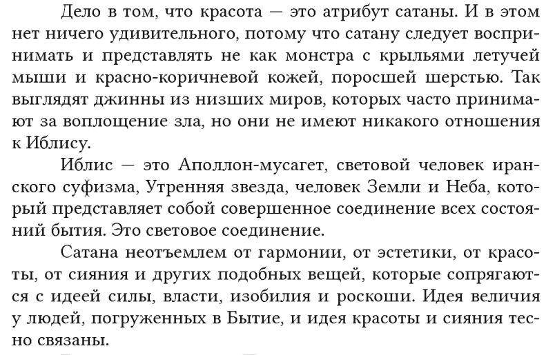 Иблис в представлениях Джемаля Статус-кво — это Иблис, это Сатана. Как раньше говорили суфии: «Султан — тень Аллаха на земле». Это кощунство, потому что у Аллаха нет тени. Зиллият — тень по-арабски. У Аллаха не может быть тени. Тем более в виде султана. Но то, что султан — тень Иблиса на земле, это совершенно точно. И Иблис как Великое Существо, как совокупность зла, он для таких людей, как этот молодой курд, представляется наивысшей ценностью. Потому что он дает благо. Что он дает? Он дает свет, он греет, это солнечное существо, Люцифер, Ормузд. Падший.