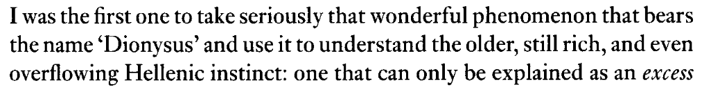 Vor allem empfieng Dionysus selbst jenes zwiespältige Wesen.