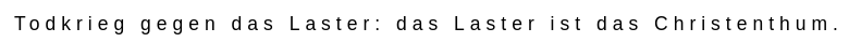 Was ist gut? — Alles, was das Gefühl der Macht, den Willen zur Macht, die Macht selbst im Menschen erhöht. Was ist schlecht? — Alles, was aus der Schwäche stammt. Was ist Glück? — Das Gefühl davon, dass die Macht wächst, dass ein Widerstand überwunden wird. Nicht Zufriedenheit, sondern mehr Macht; nicht Friede überhaupt, sondern Krieg; nicht Tugend, sondern Tüchtigkeit (Tugend im Renaissance-Stile, virtù, moralinfreie Tugend) Die Schwachen und Missrathnen sollen zu Grunde gehn: erster Satz unsrer Menschenliebe. Und man soll ihnen noch dazu helfen. Was ist schädlicher als irgend ein Laster? — Das Mitleiden der That mit allen Missrathnen und Schwachen — das Christenthum…