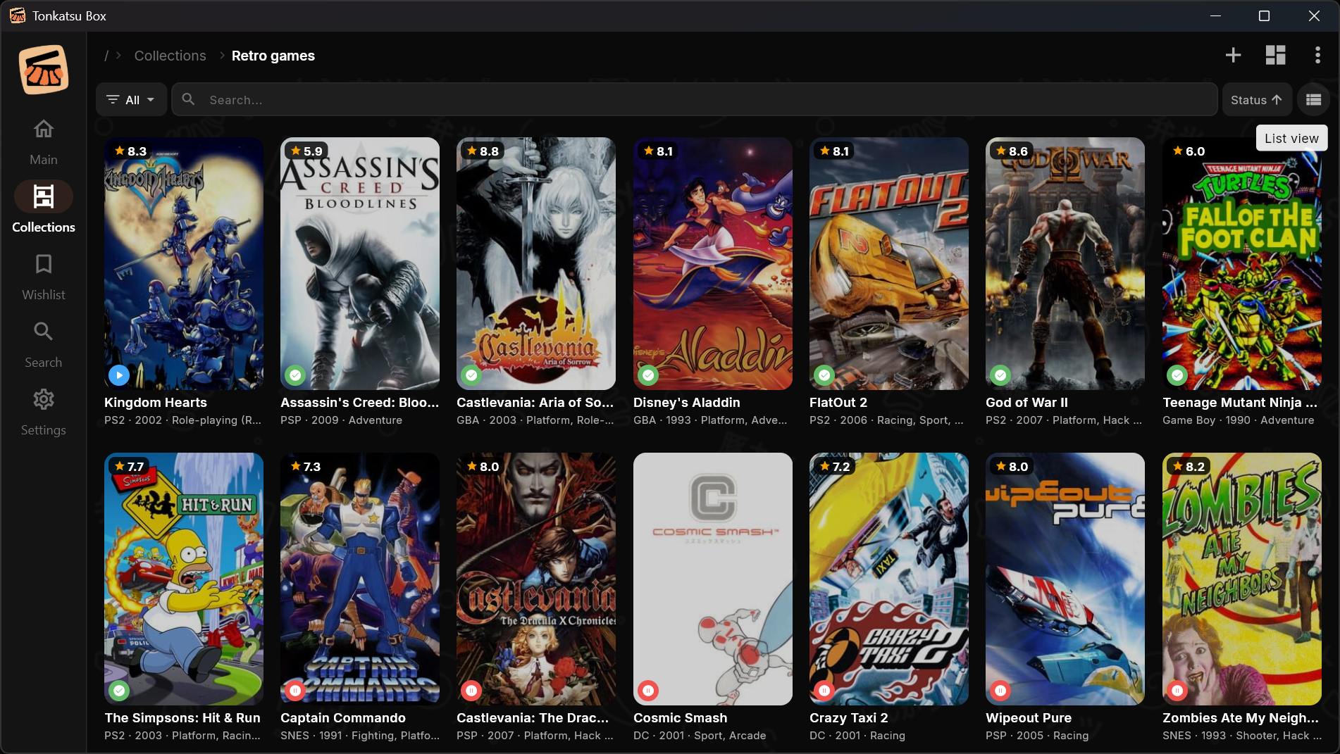 Все ключи уже вшиты — скачал, открыл, работает. Без регистрации, без облака, всё хранится локально. Работает оффлайн. Без рекламы. Есть готовые коллекции — 25 000+ ретро игр на 23 платформах (NES, SNES, Genesis, PS1, GBA и т.д.) с обложками и рейтингами. Скачиваешь файл, импортируешь — полная библиотека платформы. Windows, Linux, Android.