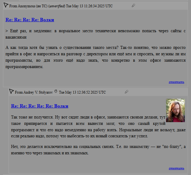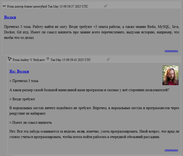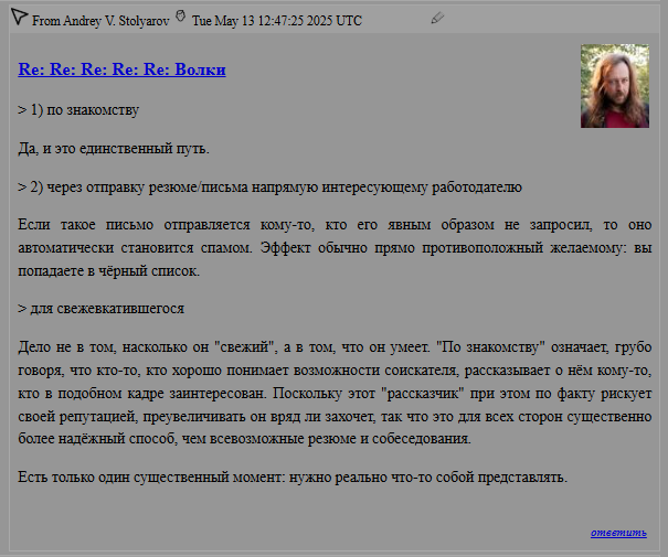 К широкому известному в узких кругах доценту Андрею Столярову заглянул... Кто бы вы думали? Волчок от Антона Назарова. Как ни удивительно, гуру не выдал традиционный комментарий "вон с моего сайта мразь", а даже удостоил юного падавана своей мудростью.
