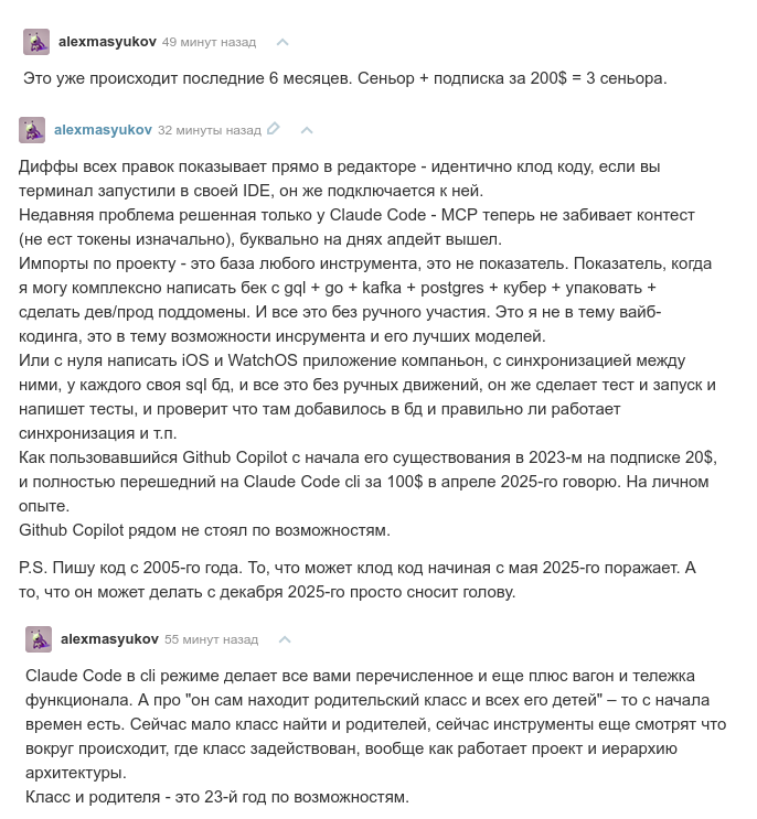 Короче я не первый месяц эту хуйню наблюдаю у разных людей. И никто сука из пиздящих про то какой он аи-кодер и что будущее наступило, не может показать ебаный результат.