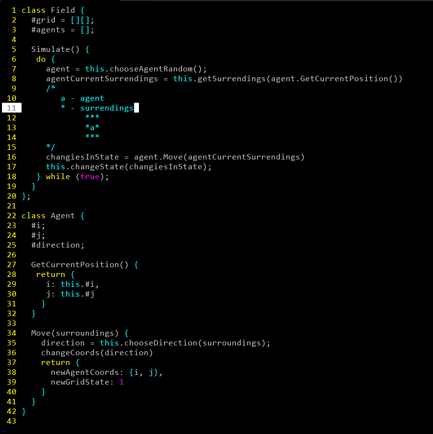 >>3520090 А можешь показать код любой симуляции что ты делал с таким подходом? Мб не свой код, а которым ты вдохновлялся. Я классы использовал больше для объяснения задумки, а так есть просто холст, на котором по очереди ползают агенты.