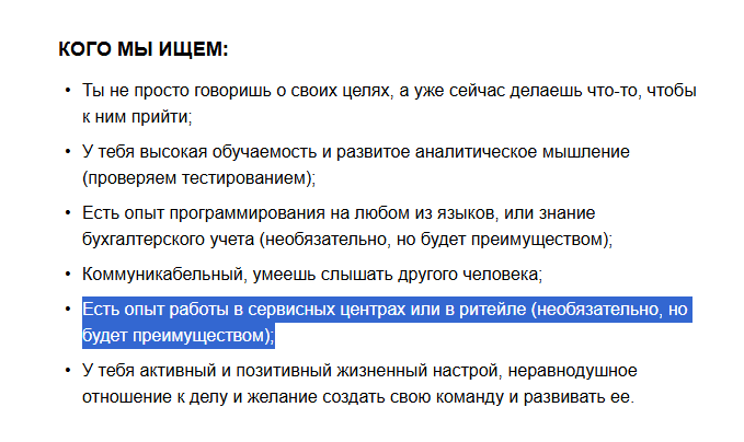 >>3512257 А смысл то это делать, это не ХХ ру, да и с таким требованиям и с нищенской зп я не думаю что адекватные люди с этим соответствующими требованиями пойдут к ним работать.