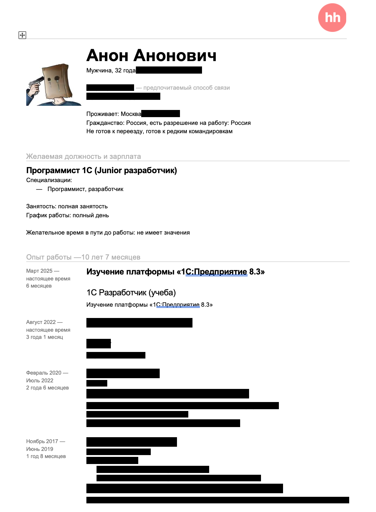 Решил сегодня открыть резюме, за день ни одного письма, но одной херки в телеге. При том что у меня ёб твою мать сколько попыта, и не указаны зарплатные ожидания.