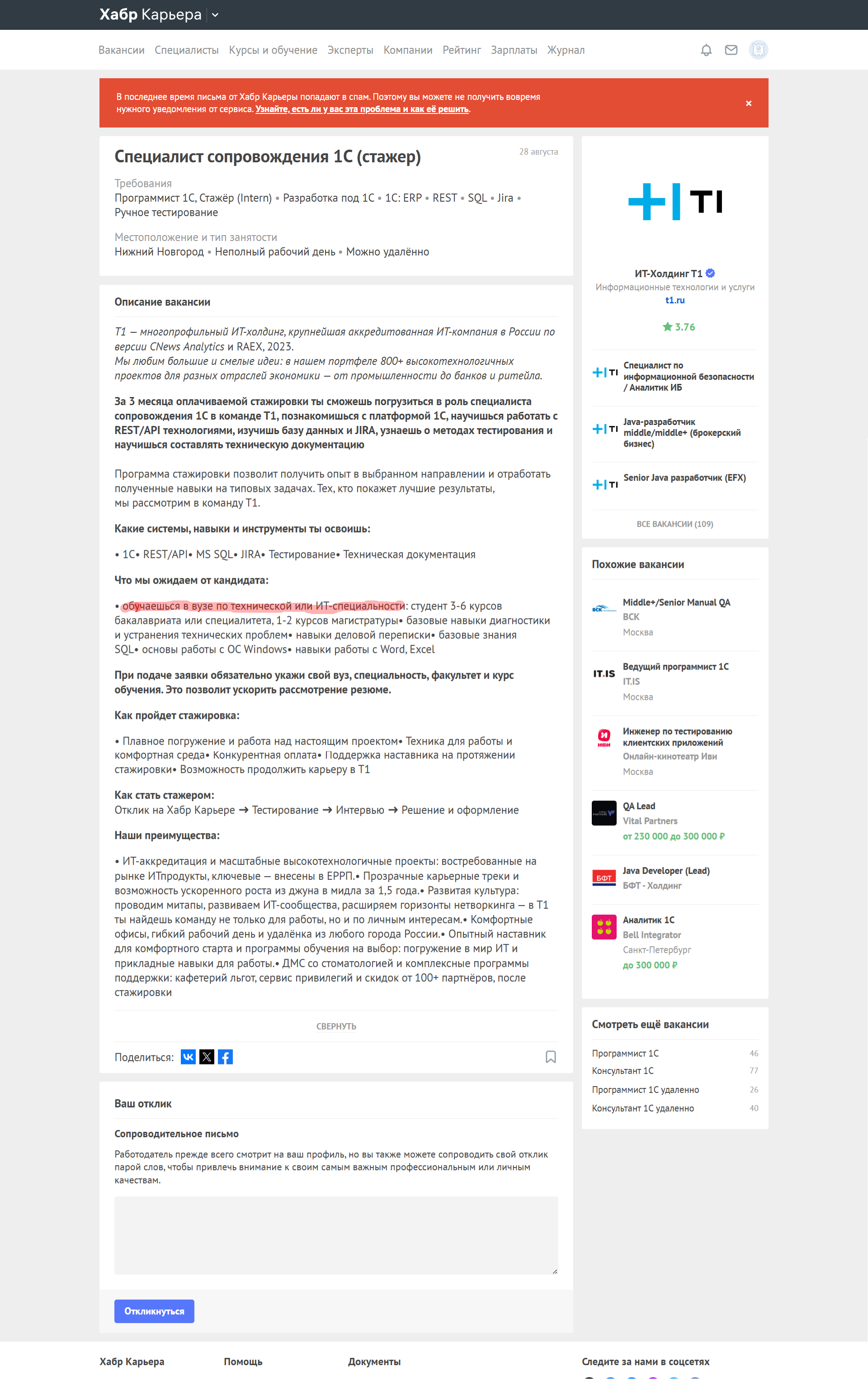 >>3533137 если в скринах, то это я да, опыт учебы в опыт работы зафигачил по итогу дошел до финала в 2 компаниях на джуна - 1) айти компания аутсорс - 1сники нужны чтобы настроить обмены с системами написанных на нормальных языках программирования. Сделал тестовое, лайвкодинг, личный собес - щас на проверке у СБ 2) организация предоставляет бух услуги + айти - пришел просто попиздел за жизнь, проходил полиграф и сознавался во всех грехах Щас жду, везде просил 80-100к