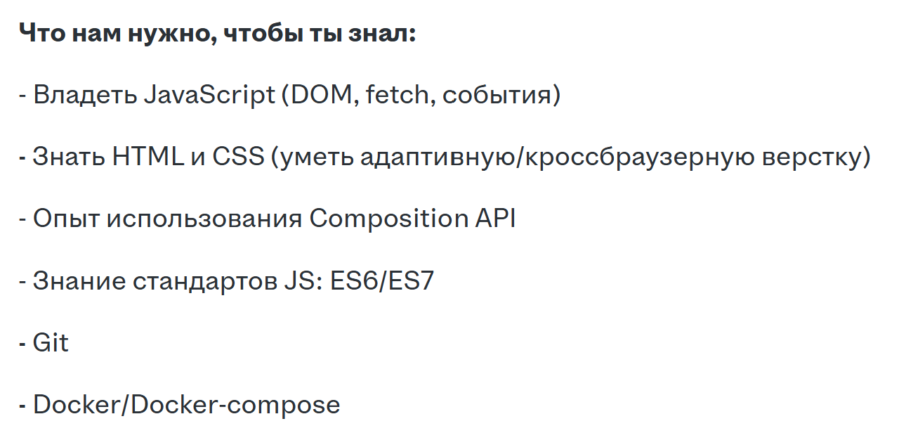 ждут желание работать и вкатываться на мидла ооооооочень быстро (полгода максимум) джуны тупо не нужны, ну и на собесе на джуна смотрят на недо человека (использование линтера, че делал в учебных проектах, как в хату офис заходишь, где сел, кто ты по жизни чухан, пацан или гречневый и тд) тк по скилам тупо спрашивать нечего, если сделал тех задание то расскажи че как делал, смотрят больше на то не является ли человек двадцати/тридца/сорока/пятилетним ебалаем после курсов "готовым на все", и как бы возникает вопрос нахуй он такой нужен.