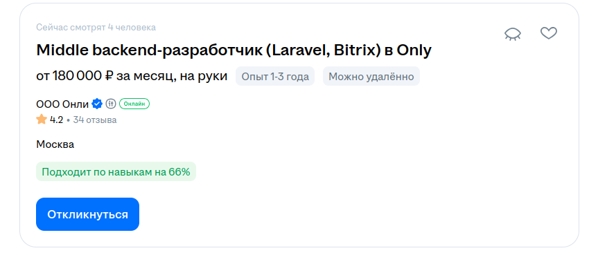 По вакансиям совсем грустно: Laravel - 2 шт. остальное Bitrix / WP
