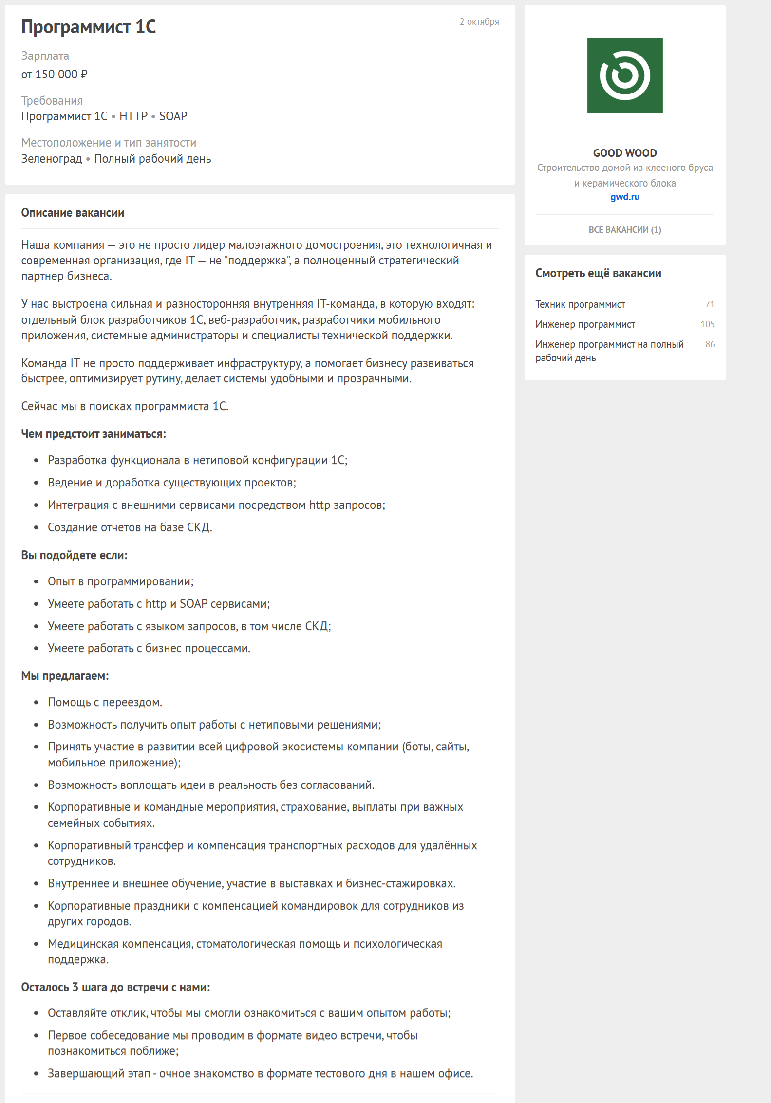 >>3536005 >3000-5000 вакансий что мешает? бота делаешь и вперед. или скрипт какой. а на деле что не так? больше вакансий, больше шанса что возьмут. у меня знакомый откликнулся когда искал работу на 700шт. воронка же, разве нет? >в тиндере проще всего знакомиться, потому что там больше всего женщин от части да. так и есть. > Вакансий golang программеров всего штук 800 их на самом деле больше примерно раза в 2. просто никто на хх не публикует, потому что там найм максимально хуевый. сначала очень тщательно ищут по своим и по партнеркам всяким. или смотрят хх, видят норм кандидата, и ему описание вакансии. >А ты через 10 лет будешь всё также за 100к/месяц небо коптить, потому что тебе влом было рисковать минусы? кто хочет рисковать? 100к это зп джуна в 1с, ты о чем. >>3536106 кстати нахожу забавным, что анон сравнил количество вакансий, и не сравнил саму динамику рабочего процесса. то есть в то время как инженер спокойно окукливается в своем мирке, программист 1с будет общаться и общаться много. хотя конечно разраб 1с разрабу 1с, но вот общался со знакомым, по 14ч созвонов в неделю. и все важные.